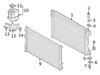 Radiators help regulate your Audi engine’s temperature and keep it within its optimal operating range. It is made up of two tanks which can be metal or plastic, connected by metal tubes with fins attached to direct air across the tubes called a core. Coolant circulating within the engine absorbs the engine’s heat, bringing down the engine’s temperature. This hot coolant then flows into one of the radiator’s tanks. It is pushed through the core of the radiator, where heat from the coolant is passed to the air flowing through it, reducing the temperature of the coolant before entering back into the engine from the opposite radiator tank.